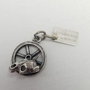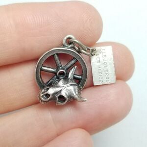 Vintage Sterling Silver Albuquerque New Mexico Skull Wagon Wheel Charm Pendant