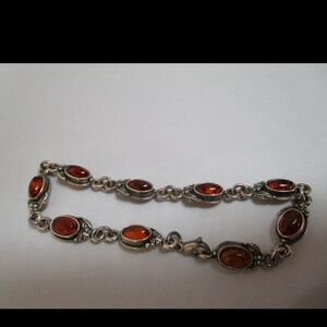 Vintage Sterling Silver & Amber Bracelet Oval Sections Links With Grapes 7 1/2"