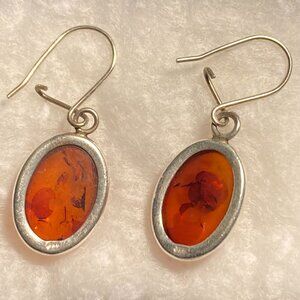 Vintage Sterling Silver Amber Cabochon Handmade Earrings