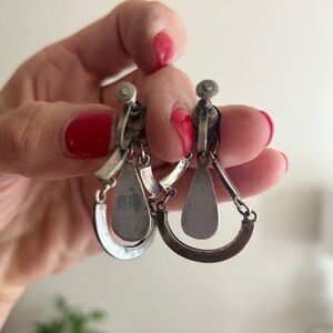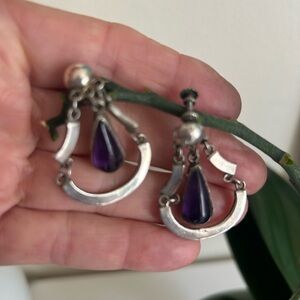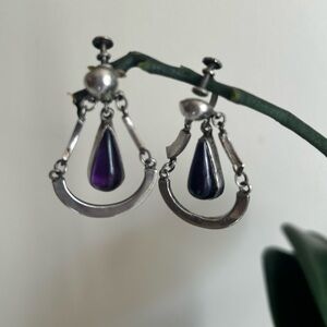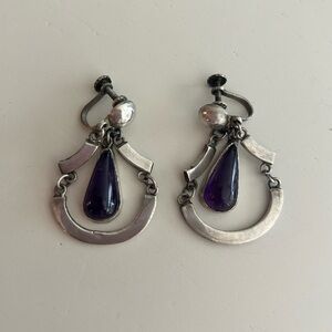 Vintage Sterling Silver Amethyst Cabachon Drop Earrings Dangle Screw Back Mexico