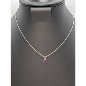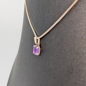 Vintage Sterling Silver Amethyst Cabochon Pendant Box Chain 16" Necklace. Pre-owned, this necklace is in great vintage condition.