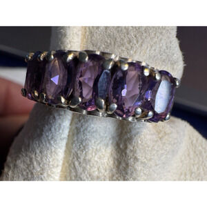 Vintage Sterling Silver Amethyst Ring CNA Thailand Size 10 Five Stone Band
