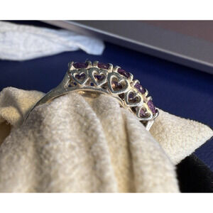 Vintage amethyst sterling silver ring, CNA Thailand jewelry, five-stone amethyst band, size 10 silver gemstone ring, February birthstone jewelry, heart cutout silver ring