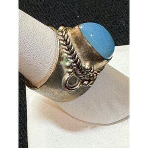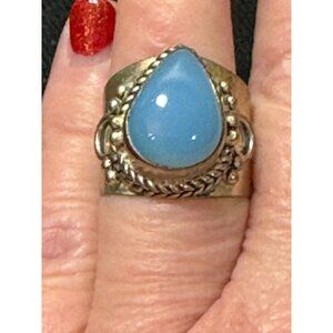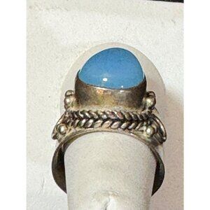 Vintage Sterling Silver & Aqua Chalcedony Ring With Braided Detail Size 9