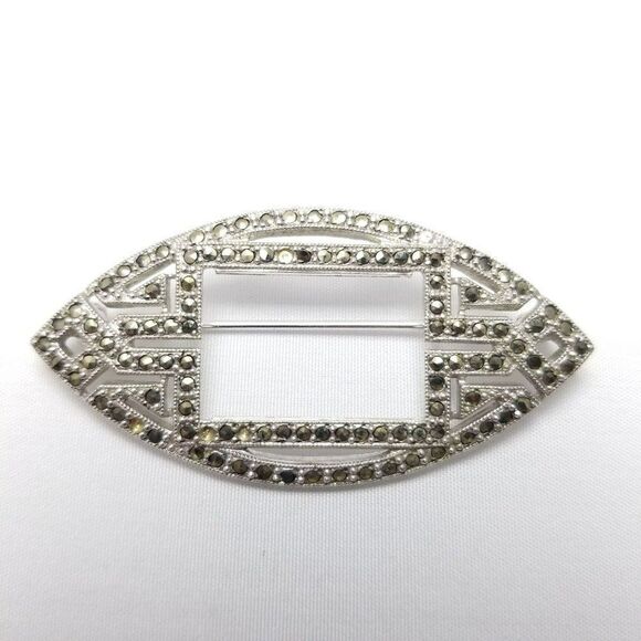Vintage Sterling Silver Art Deco Style Marcasite Encrusted Brooch, Lapel Pin