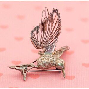 Vintage Sterling Silver Art Nouveau Hummingbird Brooch - X11