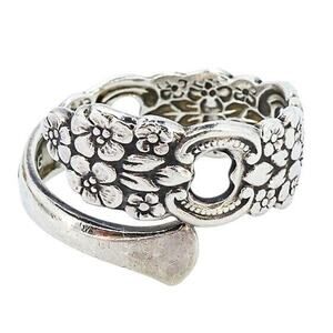 Vintage Sterling Silver Artisan Filigree Bypass Wrap Ring Size 8 Ornate Floral Design