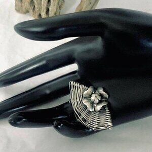 FEATURES: A sterling silver Basket Weave Fan with a blossom accent / See photos for more details