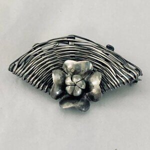 Vintage Sterling Silver BASKET WEAVE Flower Fan Brooch