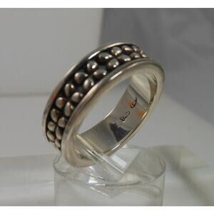 Vintage Sterling Silver Band Ring Size 7.25 Black Oxidized Pattern 6mm Thailand