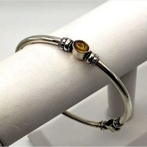 Vintage Sterling Silver Citrine Cabochon Bangle Bracelet