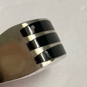 Vintage Sterling Silver Black Onyx Inlay Ring Mexico Heavy Solid Unisex Size 13