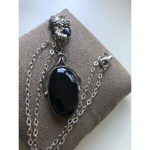 Vintage Sterling Silver Black onyx pendant On A Sterling Silver 20” Chain