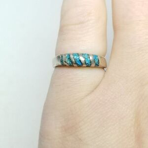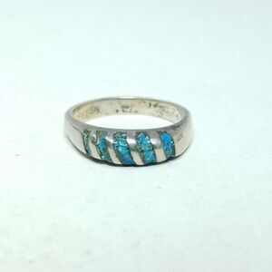 Vintage Sterling Silver Blue Inlaid Band Ring, Size 5 Band, Made in Mexico