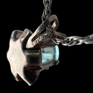 Vintage Sterling Silver Blue Topaz Pendant & Chain Necklace 18 inch, Solitaire