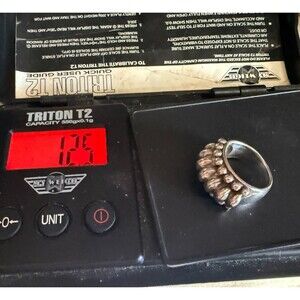 This stylish Vintage Sterling Silver Bubble Dome Modernist Ring, sized at 6.75, is a remarkable piece of fine jewelry. Its round and dome-shaped design contributes to a modern and sophisticated appearance, and the presence of a hallmark assures quality and authenticity. Crafted from sterling silver, this signed vintage ring features a refined design and has a substantial weight of 12.5 grams.