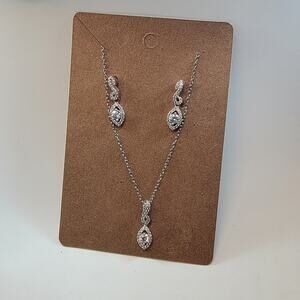 Vintage Sterling Silver CZ Necklace and Earring Set with Marquise Drop Design
