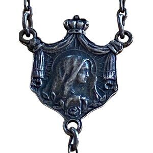 Vintage Sterling Silver Catholic Rosary With Crucifix & Virgin Mary Centerpiece