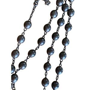 This elegant rosary is crafted from sterling silver, offering a timeless and sophisticated appearance. The detailed crucifix and Virgin Mary centerpiece are beautifully designed, making it a meaningful devotional item for personal use or as a thoughtful gift. Its durable construction ensures it will be a cherished piece for years.
