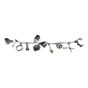 This collectible bracelet is a wonderful representation of traditional Western, mining, and nautical symbolism, and would make a great addition to any vintage jewelry or charm collection.