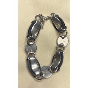 Vintage Sterling Silver Chunky Blue Sodalite Cabochon Link Toggle Bracelet