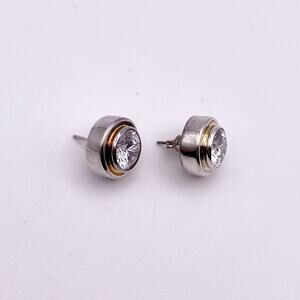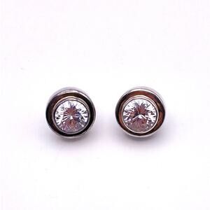 Vintage Sterling Silver Chunky Studs Big CZ Stone