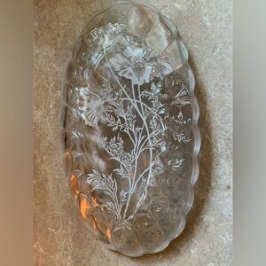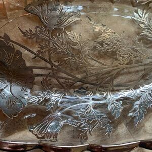 Vintage Sterling Silver City On Clear Crystal Flanders Flowers Oval Bowl Plate