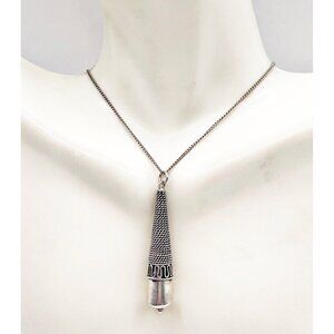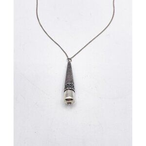 Vintage Sterling Silver Cone Pendant Necklace Pearl Drop Boho Artisan 925