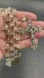 This lovely vintage rosary features a large sterling silver crucifix measuring 2 1/4 by 1 5/8”. The center piece is brass and features Jesus with what I assume is the Sacred Heart. Please note I am not Catholic so feel free to correct my terminology. The necklace is composed of 54 faceted crystal beads with a mixture of oval and bicone. They are on brass chain. The necklace measures 34” with the drop of five beads measuring 7 1/4”. This is measured from the heart to the bottom of the crucifix. This is an older rosary. The beads are in fabulous condition!