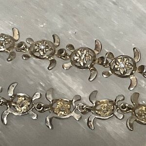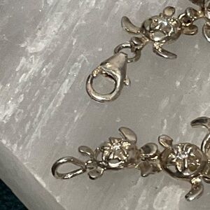 Vintage Sterling Silver Crystal Quartz Stone Turtle Link Bracelet Signed 925
