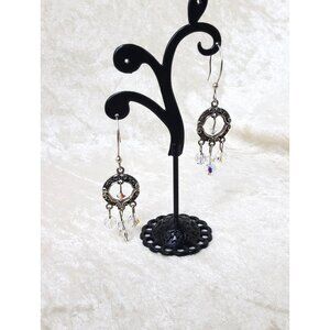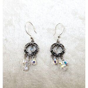 Vintage Sterling Silver Crystal & Silver Chandelier aurora borealis Earrings