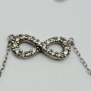Vintage Sterling Silver Cubic Zirconia Figure 8 Infinity Necklace 18" Adj.