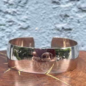 Vintage sterling silver wide cuff bracelet. Lightweight. Has been engraved with KPV. High quality brand Danecraft with signature. Some light age and tarnish on bracelet. Edge opens to customize fit to wrist.