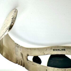 This vintage bracelet boasts a striking Kingman turquoise stone set in a sterling silver cuff, exuding timeless elegance. The intricate silverwork beautifully complements the vibrant turquoise, making it a distinguished piece for collectors and enthusiasts. Its craftsmanship and materials ensure durability, and its design offers a classic yet unique addition to any jewelry collection.