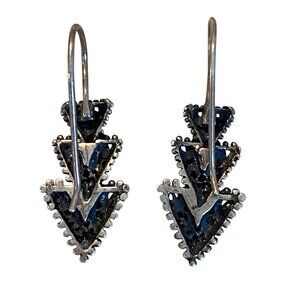 These vintage earrings feature a striking tribal design crafted from sterling silver. The intricate detailing adds elegance and sophistication, making them an ideal choice for formal and professional settings.