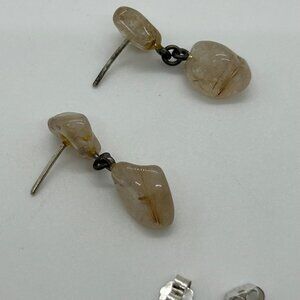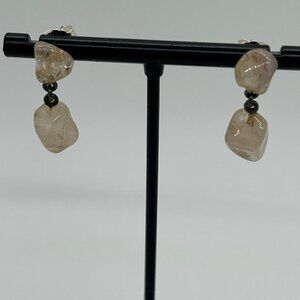 These earrings tell a tale of timeless elegance. The sterling silver complements the natural quartz, each stone uniquely shaped, whispering stories of Earth's artistry through their delicate, golden inclusions. Wear these vintage pieces to carry a touch of nature's charm and enduring beauty wherever you go.