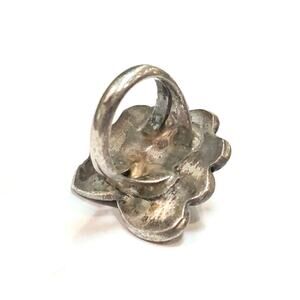 Though unmarked, this beautiful piece has been tested and confirmed to be sterling silver. This ring is a petite size 3.5, and its eye-catching medallion measures approximately 15/16" long by 7/8" wide. Based on its design elements and traditional silversmithing techniques, this piece likely dates from the mid-20th century (circa 1950s-1970s), a golden era for Native American and Southwestern jewelry. It's a timeless treasure for collectors and enthusiasts alike.