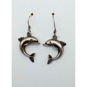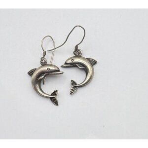 Vintage Sterling Silver Dolphin Dangle Earrings Beach Marine Fish 925