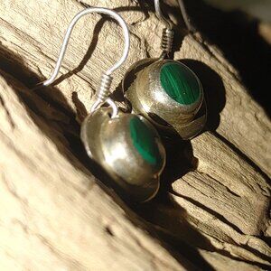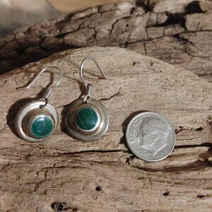 Vintage Sterling Silver Drop Earrings Malachite Artisan Crafted Stamped 925