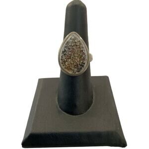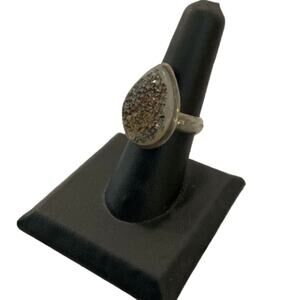 Vintage Sterling Silver Druzy Quartz Teardrop Ring – Stamped 925