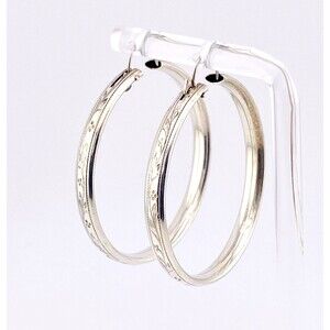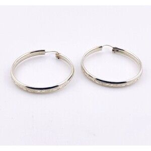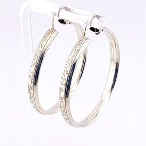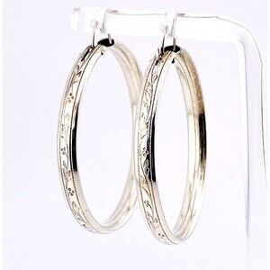 Vintage Sterling Silver Engraved Wreath Hoops 1 1/2 In Hoop Earrings 5MM Wide