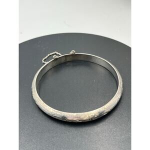 Vintage Sterling Silver Etched Engraved Thin Hinged Safety Chain Bangle Bracelet