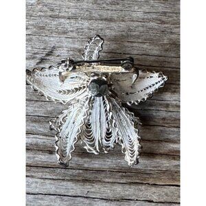 Vintage Sterling Silver Filigree Flower Brooch With Faux Pearls