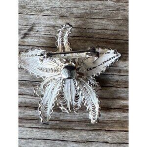 Elegant vintage brooch crafted from sterling silver with intricate filigree work, adorned with faux pearls. Ideal for enhancing any formal attire.