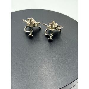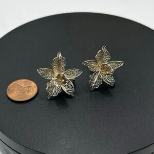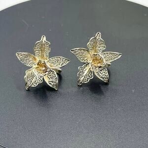 Vintage Sterling Silver Filigree Flower Earrings Delicate 925 Floral Screw Backs