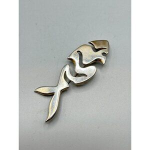 Vintage Sterling Silver Fish Pin Brooch Mexico 925 Cutout Modernist Fish Jewelry
