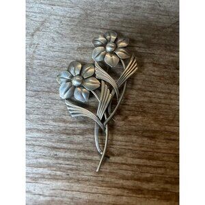 Vintage Sterling Silver Floral Flower Brooch Pin