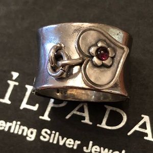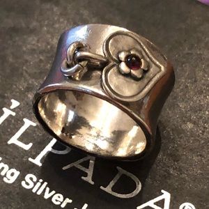 RARE Vintage Hammered Silpada Sterling Silver and Genuine Garnet “A Heartfelt Gift” Ring With a Reversible Dangle Heart Charm. Size 7. Extremely rare vintage piece from the 2003-2004 catalog. A rare find.