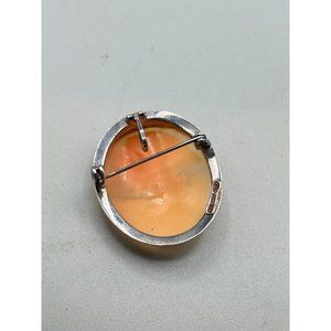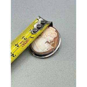 Vintage Sterling Silver Genuine Carved Cameo Shell Pendant Oval Pin Brooch