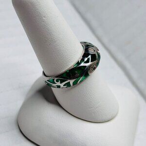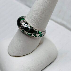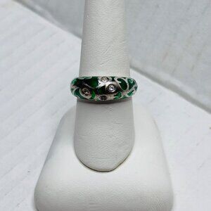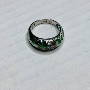 Details: Vintage Sterling Silver Green Glass and Diamonique Stone Ring Size 8